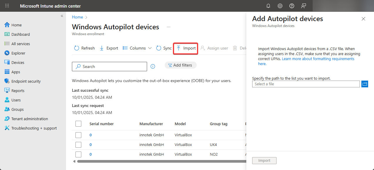 SERIALNUMBER.csvthrough Windows Autopilot Devices.