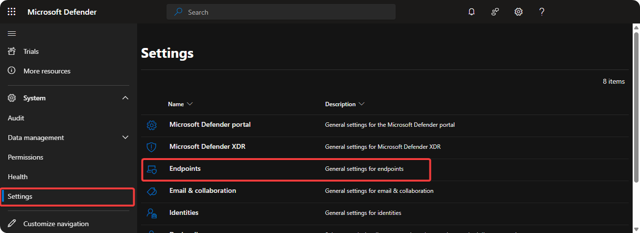 - Go to Settings → Endpoints