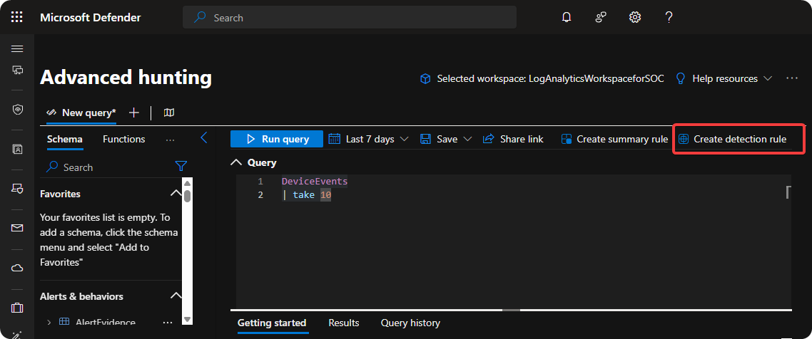 When we have crafted our KQL query in Advanced Hunting to detect threats within our environment we can use detection rules to create alerts when it’s detected on new devices. Additionally, we can also perform actions such as isolation and disable user accounts when it’s detected again.
