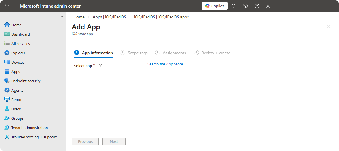 Enter and review the fields Name, Description, Publisher, Applicable device types, and other informations