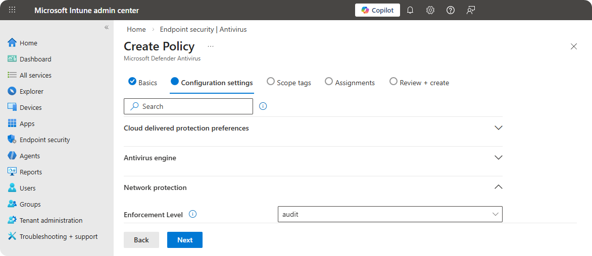 In Network Protection I recommend enabling Auditing Mode so we can monitor what operations would be blocked and allowed.