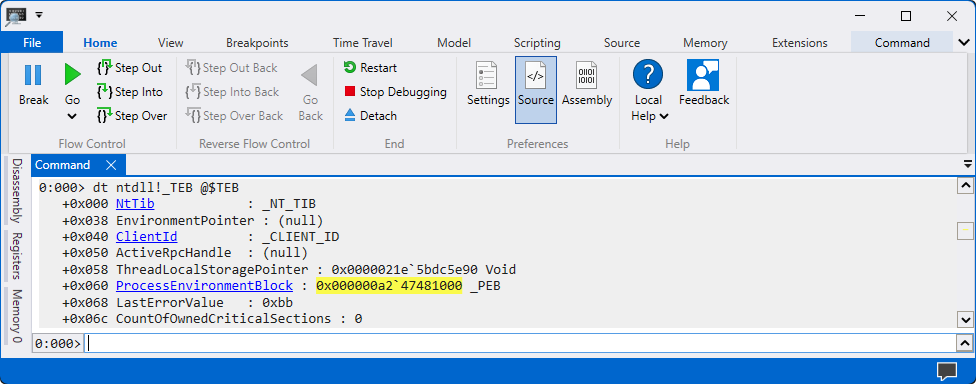println!("_TEB -> _PEB -> _PEB_LDR_DATA Address: {:?}", (*teb).ProcessEnvironmentBlock);